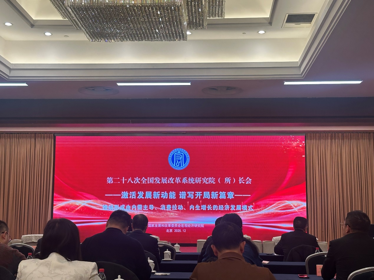 2025年12月17日,第二十八次全国发展改革系统研究院(所)长会在北京中国职工之家隆重召开。本次会议以“激活发展新动能,谱写开局新篇章”为主题,旨在贯彻落实中央经济工作会议精神和全国发展和改革工作会议部署,汇聚全国发展改革系统研究力量,为扎实推进高质量发展和中国式现代化建设建言献策。国家发展改革委及有关司局、全国发展改革系统研究院(所)代表共100多人参加会议。我校党委书记刘耀彬教授、财经数据科学重点实验室主任刘小惠教授受邀出席会议,党委办公室、校长办公室副主任黄瑶妮,统计与数据科学学院、财经数据科学重点实验室相关教师随行参会。