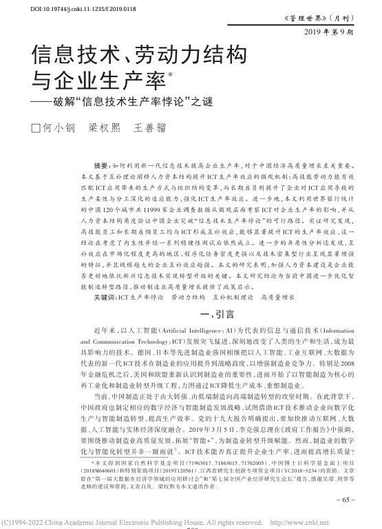 信息技术、劳动力结构与企业生产率——破解”信息技术生产率悖论“之谜